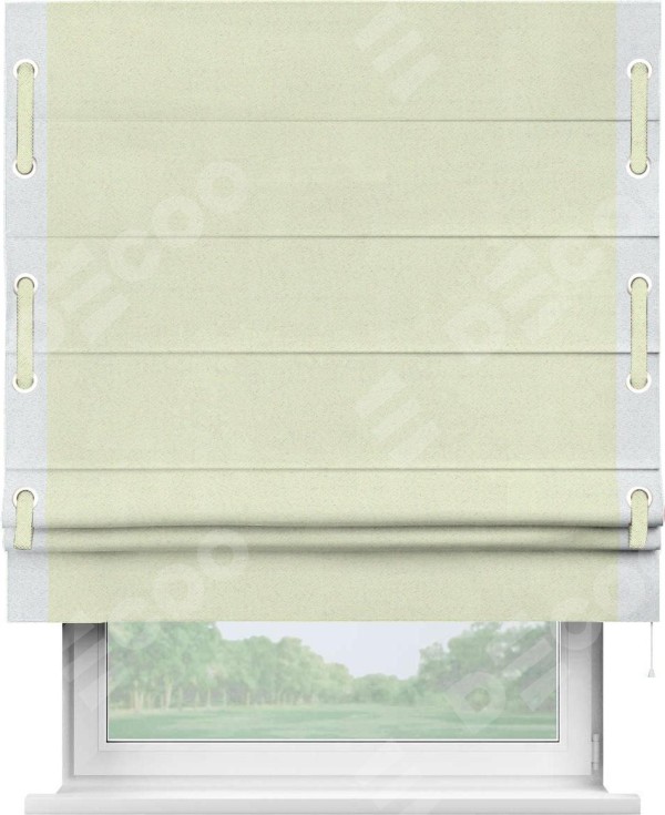 Римская штора «Кортин» с кантом Стрим Дуо (люверсы с пояском), для проема, ткань блэкаут однотонный сливочный
