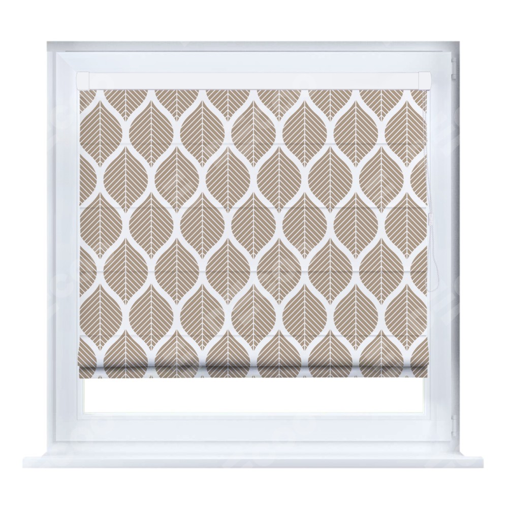 Римская штора производителя «Cortin», устанавливается на створку окна, пошита из ткани блэкаут с нанесением сублимационной печати «Листья геометрия». Штора шьётся по индивидуальным размерам, для данного типа римской шторы возможная ширина от 35 до 150 см., высота до 250 см.