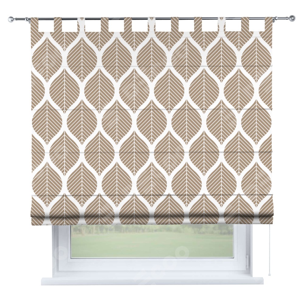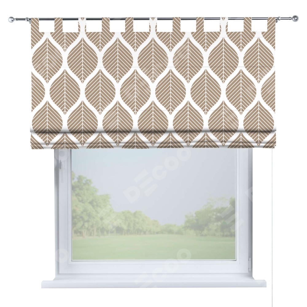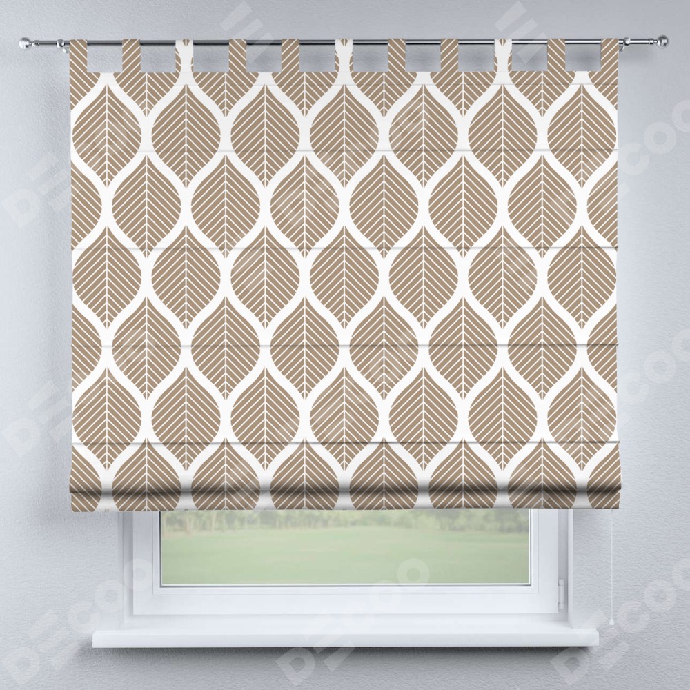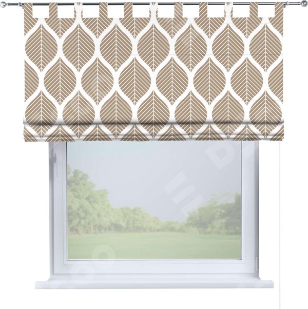 Римская штора производителя «Cortin», используется для проёма, пошита из ткани блэкаут с нанесением сублимационной печати «Листья геометрия». Данная модель пошита на петлях, комплектуется на выбор круглым карнизом и подходит для монтажа на стену. Римская штора на петлях имеет простую систему регулировки высоты, отличительным преимуществом данной модели является простой способ монтажа. Достаточно повесить ее на трубу и штора готова!