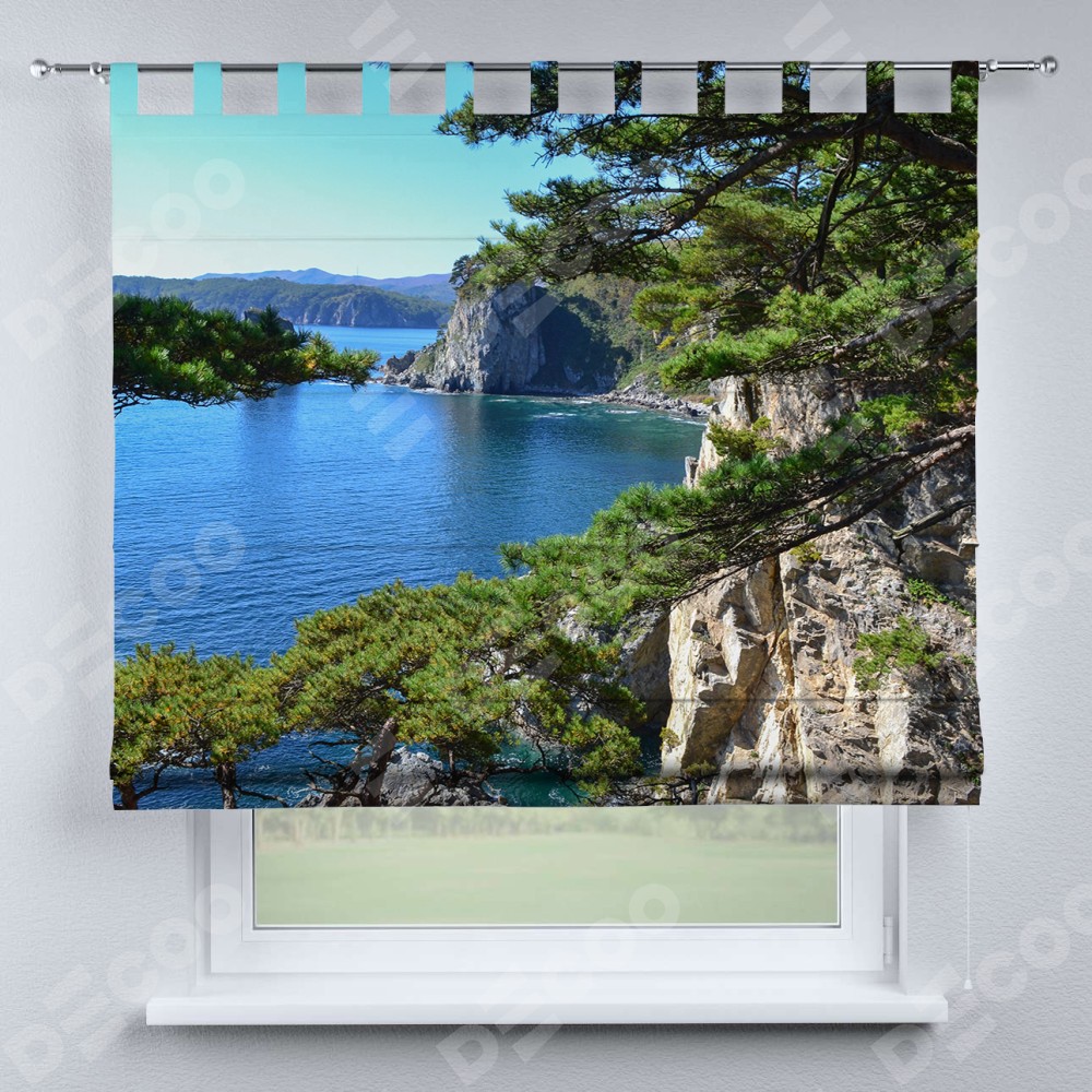 Римская штора на петлях «Море и сосны»