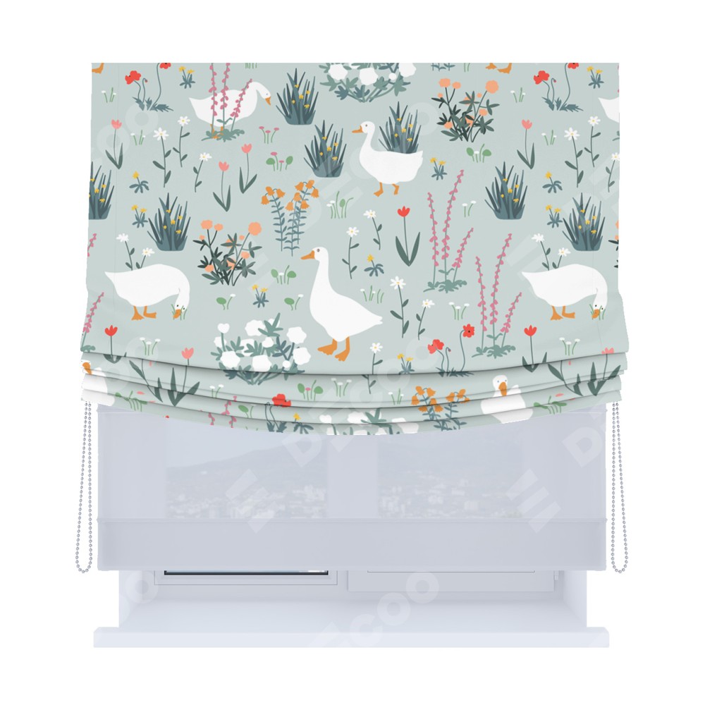 Римская штора «Кортин», день-ночь с мягкими складками, «Гуси на лугу»