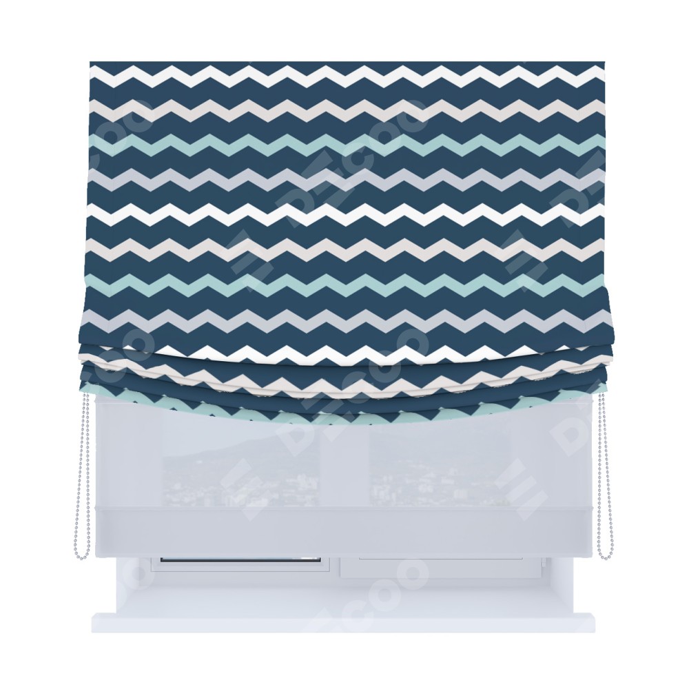 Римская штора «Кортин», день-ночь с мягкими складками, «Морской шеврон»
