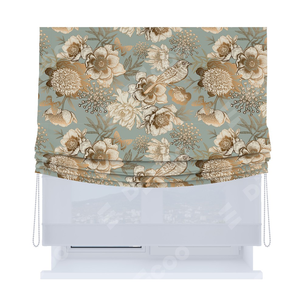 Римская штора день-ночь производителя «Cortin», используется для проёма, пошита из двух полотен, с лицевой блэкаут с нанесением сублимационной печати «Садовые цветы», вторая ткань тюль (по стандарту комплектуется тюль белого цвета артикул V-01). Имеет универсальный механизм и подходит для монтажа: на потолок, на стену и в нишу. Удобное управление каждой шторой отдельно.