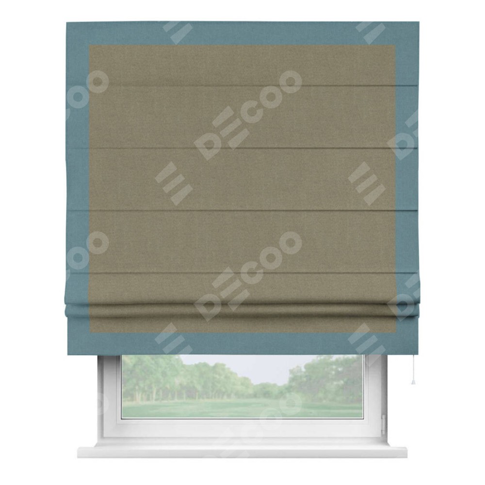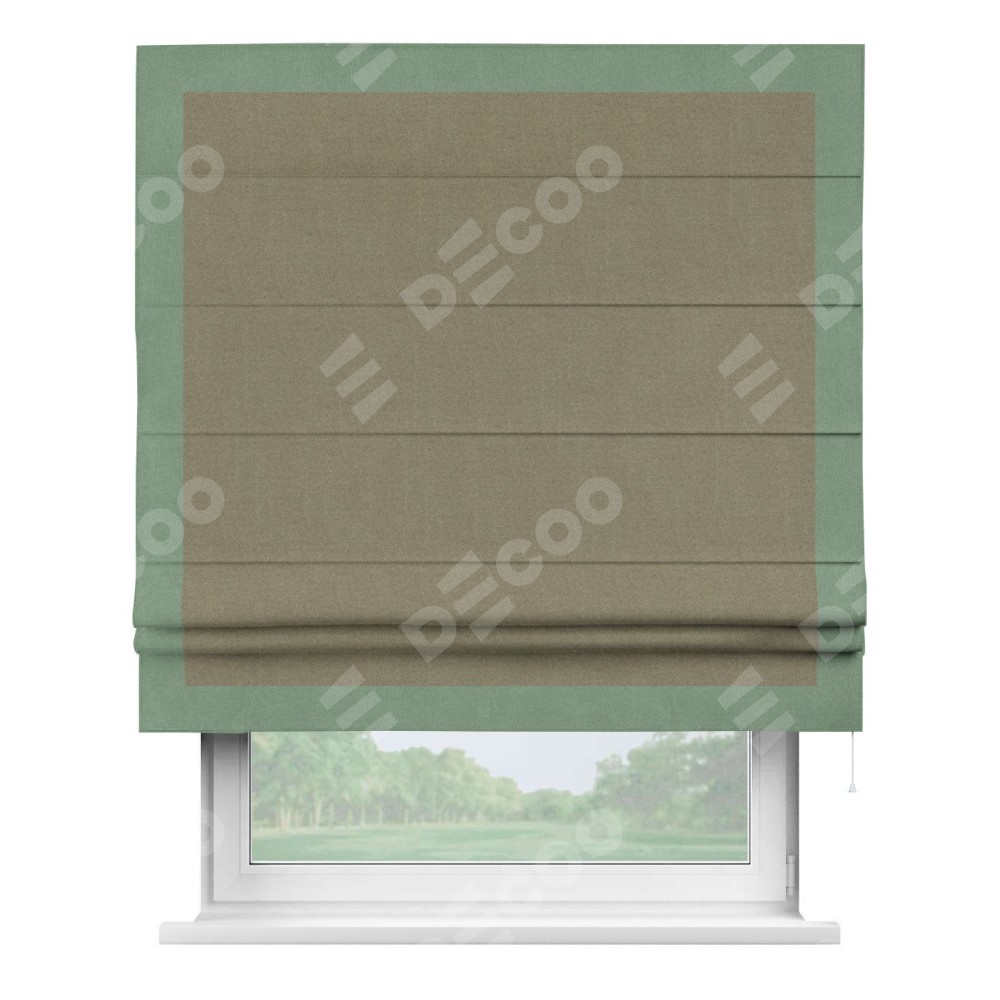 Римская штора «Кортин» с кантом Чесс, для проема, лён блэкаут бежевый