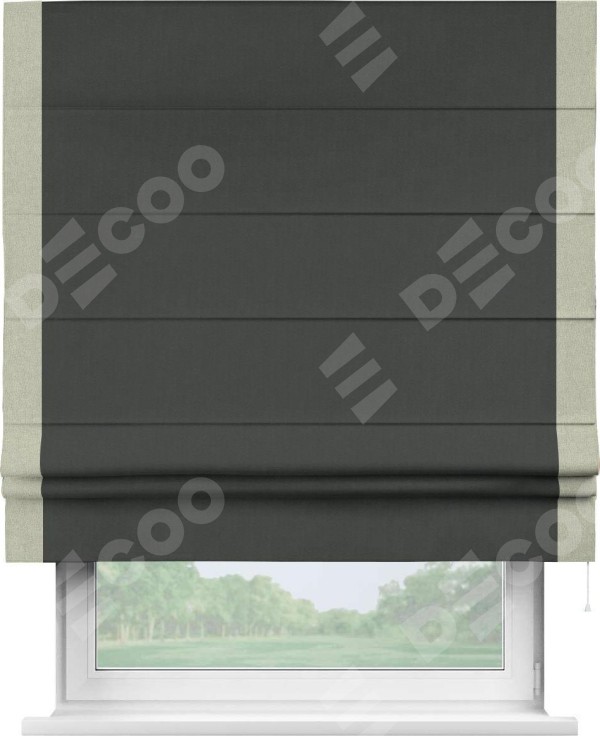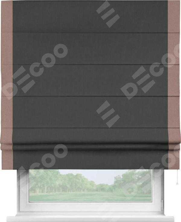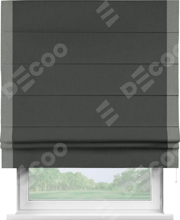 Римская штора «Кортин» с кантом Стрим Дуо, для проема, лён блэкаут графит