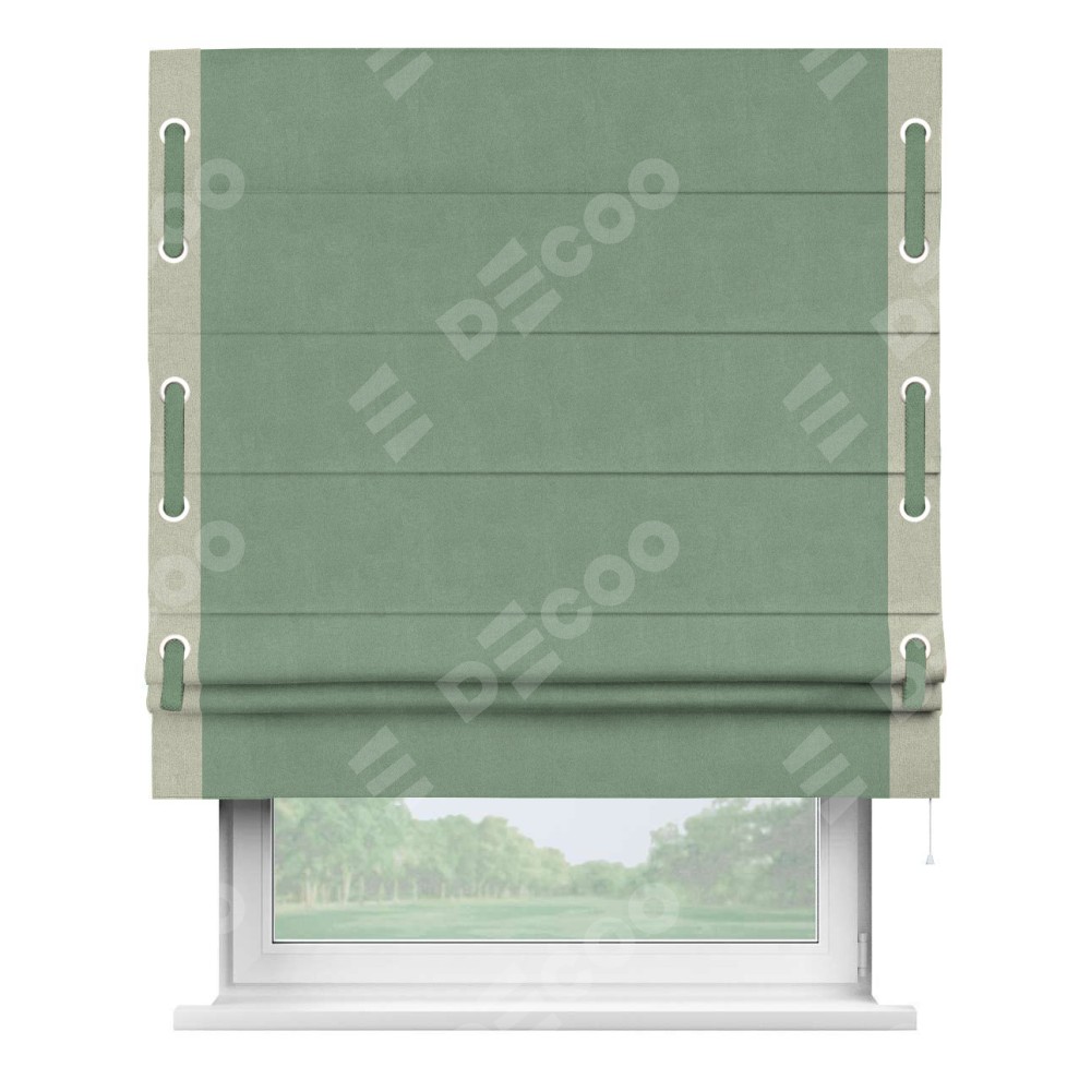 Римская штора «Кортин» с кантом Стрим Дуо (люверсы с пояском), для проема, лён блэкаут светло-бирюзовый