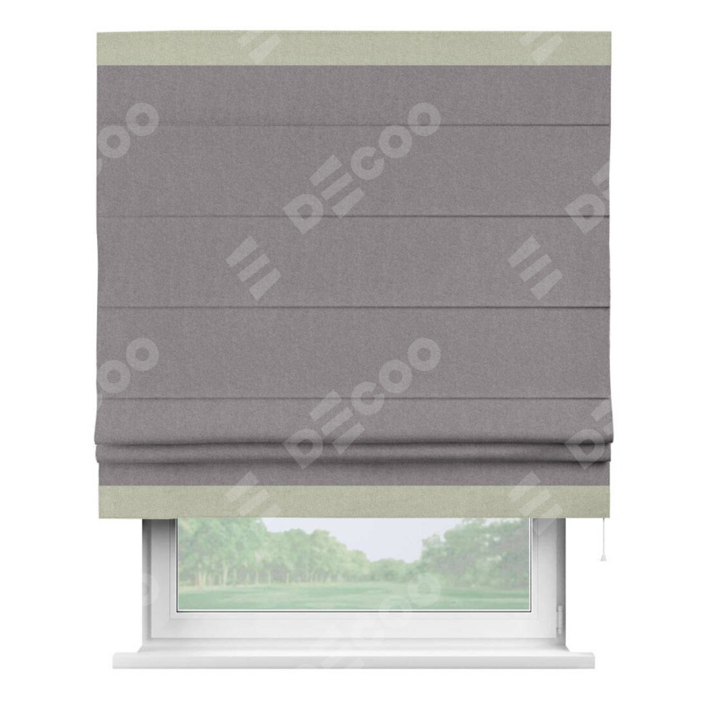 Римская штора производителя «Cortin», используется для проёма, пошита из ткани лён блэкаут сиреневый, артикул 69576. Отделка шторы кантом «Горизонт», ткань для канта используется из льна разной расцветки на выбор. Имеет универсальный механизм и подходит для монтажа: на потолок, на стену и в нишу.