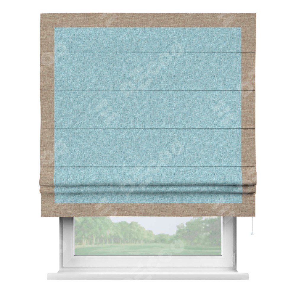 Римская штора производителя «Cortin», используется для проёма, пошита из ткани лён кашемир голубой, артикул 21616. Отделка шторы кантом «Чесс», ткань для канта используется из льна разной расцветки на выбор. Имеет универсальный механизм и подходит для монтажа: на потолок, на стену и в нишу.