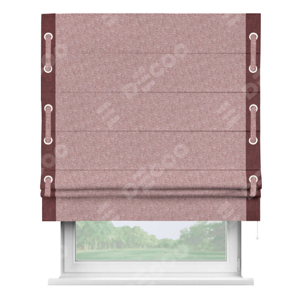 Римская штора «Кортин» с кантом Стрим Дуо (люверсы с пояском), для проема, ткань лён кашемир розовая пудра