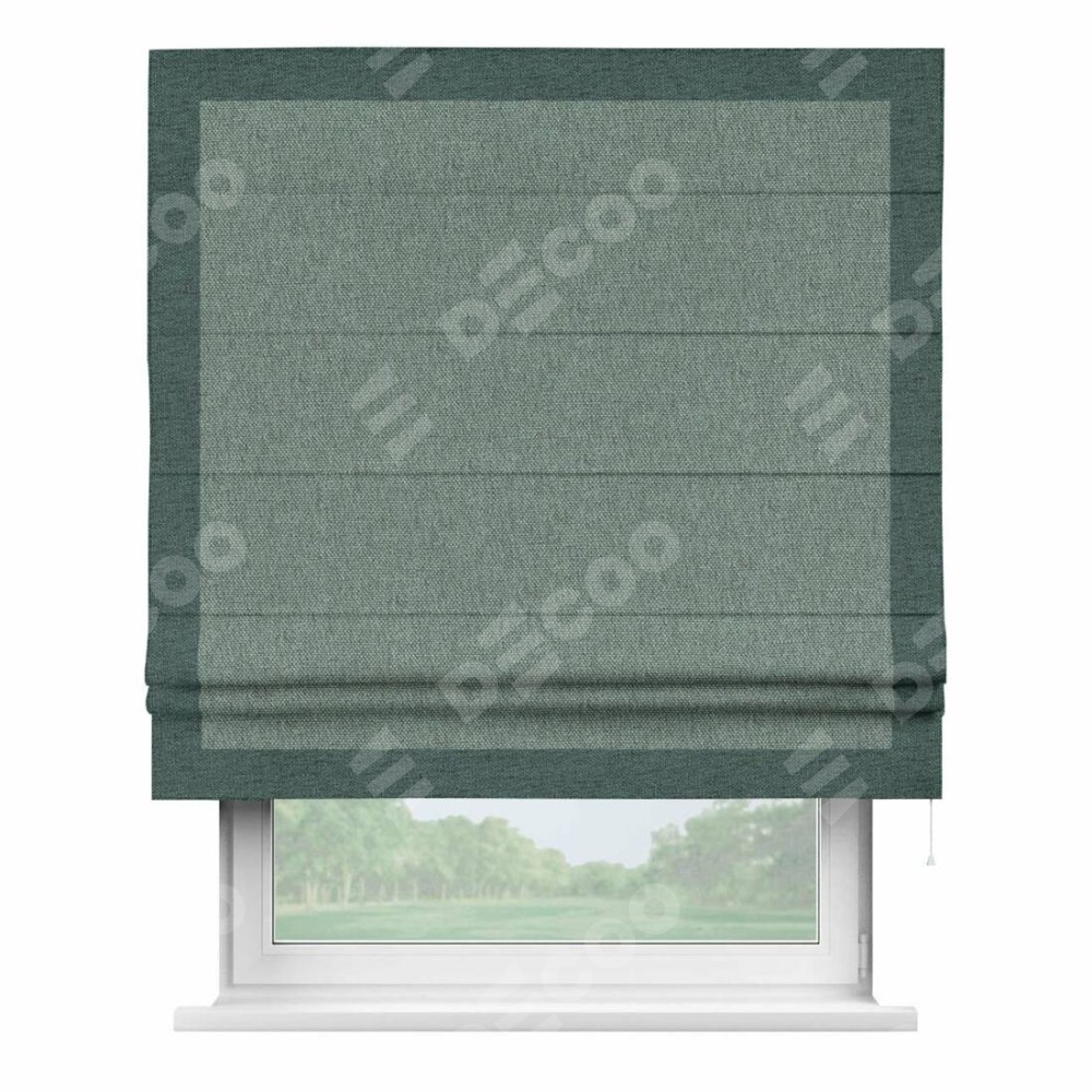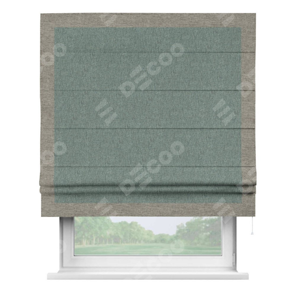 Римская штора производителя «Cortin», используется для проёма, пошита из ткани стиф димаут серо-голубой, артикул 44029. Отделка шторы кантом «Чесс», ткань для канта используется из стифа разной расцветки на выбор. Имеет универсальный механизм и подходит для монтажа: на потолок, на стену и в нишу.