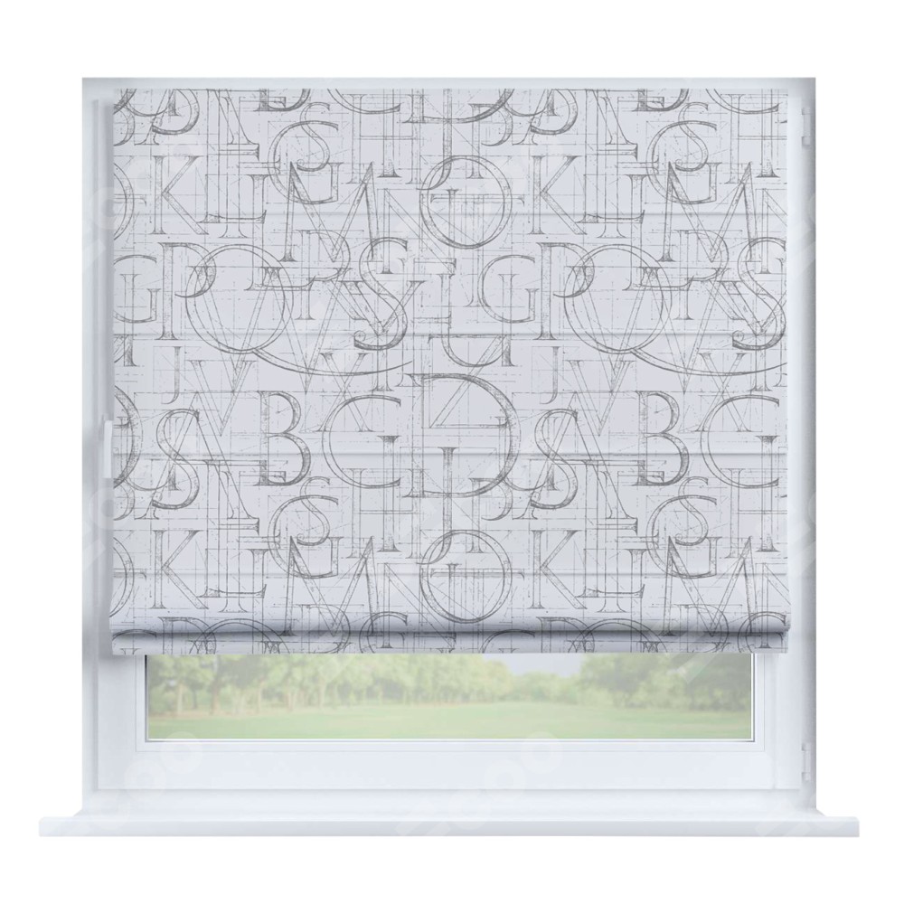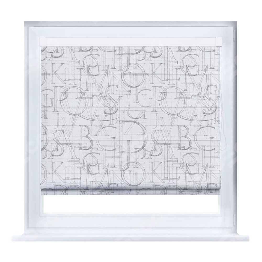 Римская штора производителя «Cortin», устанавливается на створку окна, пошита из ткани блэкаут с нанесением сублимационной печати «Античные буквы». Штора шьётся по индивидуальным размерам, для данного типа римской шторы возможная ширина от 35 до 150 см., высота до 250 см.