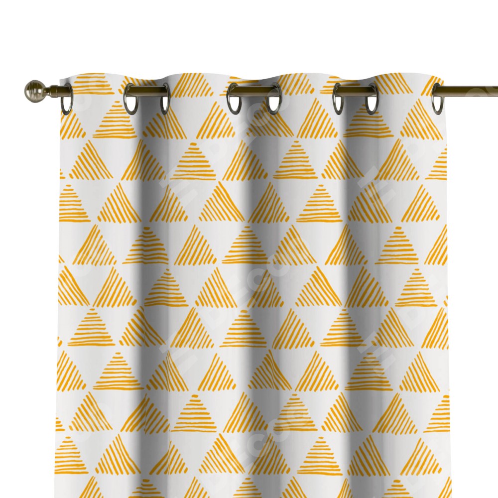 Комплект прямых штор, от производителя «Cortin», пошиты из ткани блэкаут с нанесением сублимационной печати «Желтые треугольники». Данная модель пошита на люверсах, комплектуется на выбор круглым карнизом и подходит для монтажа на стену или потолок. Прямые шторы на люверсах шьются по стандарту с коэффициентом 1/2 (на 100 см. ширины проёма 200 см. ширины ткани), отличительным преимуществом данной модели является простой способ монтажа. Достаточно повесить ее на трубу и штора готова!
