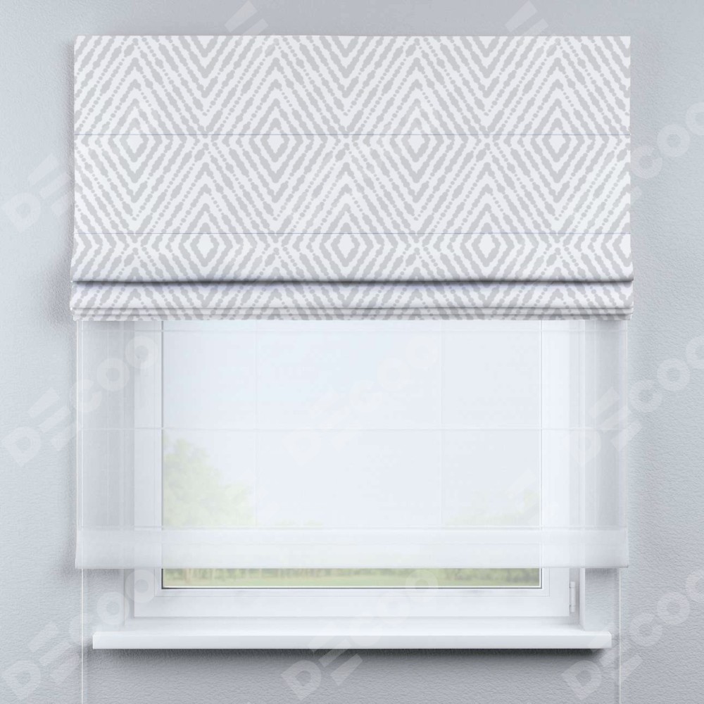 Римская штора день-ночь производителя «Cortin», используется для проёма, пошита из двух полотен, с лицевой блэкаут с нанесением сублимационной печати «Притяжение», вторая ткань тюль (по стандарту комплектуется тюль белого цвета артикул V-01). Имеет универсальный механизм и подходит для монтажа: на потолок, на стену и в нишу.