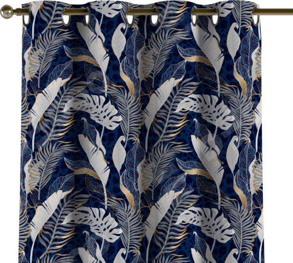 Комплект штор на люверсах «Сине-золотые джунгли»