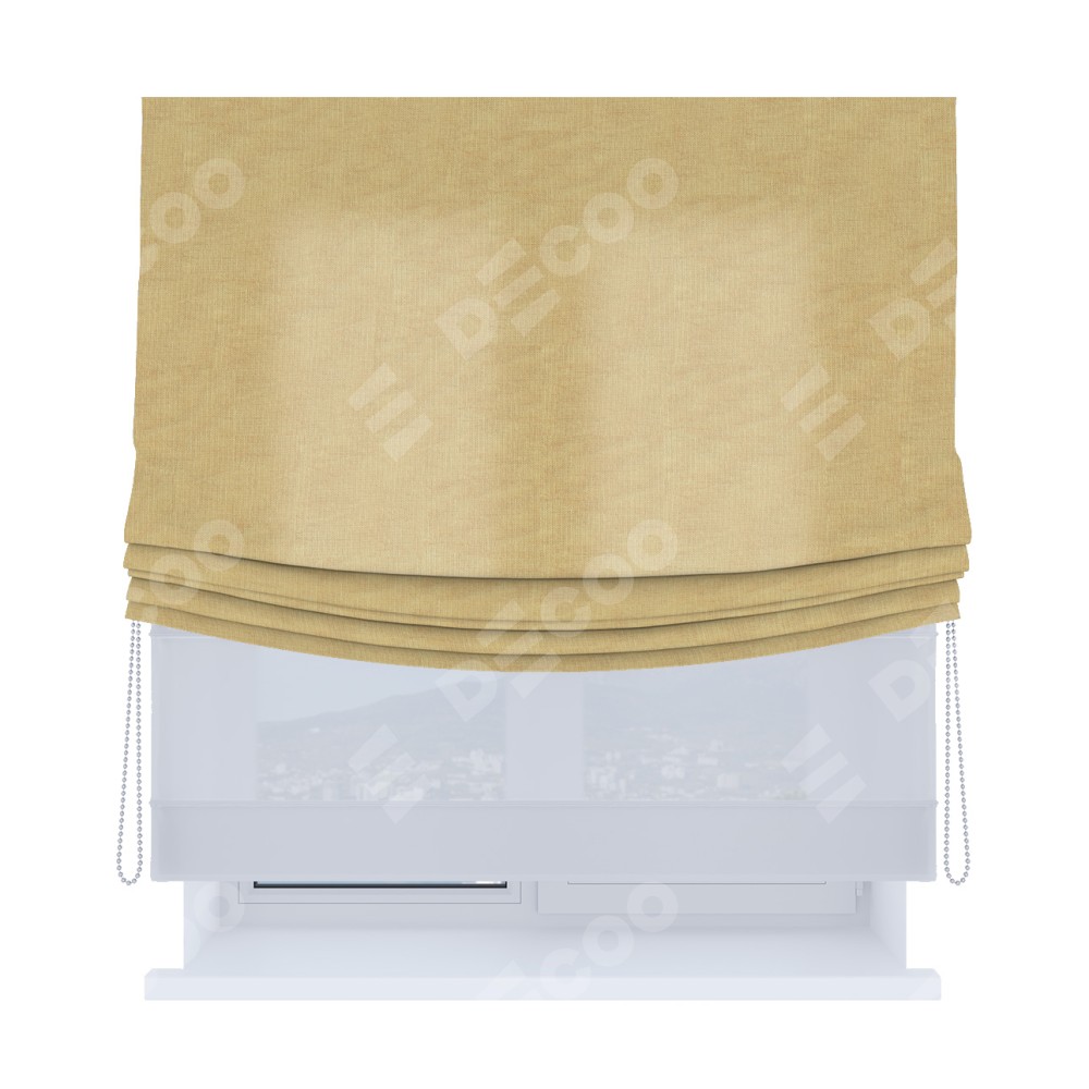 Основная ткань римской шторы не имеет горизонтальных вставок и нижнего отвеса. Это позволяет ткани произвольно драпироваться в свободные мягкие складки.