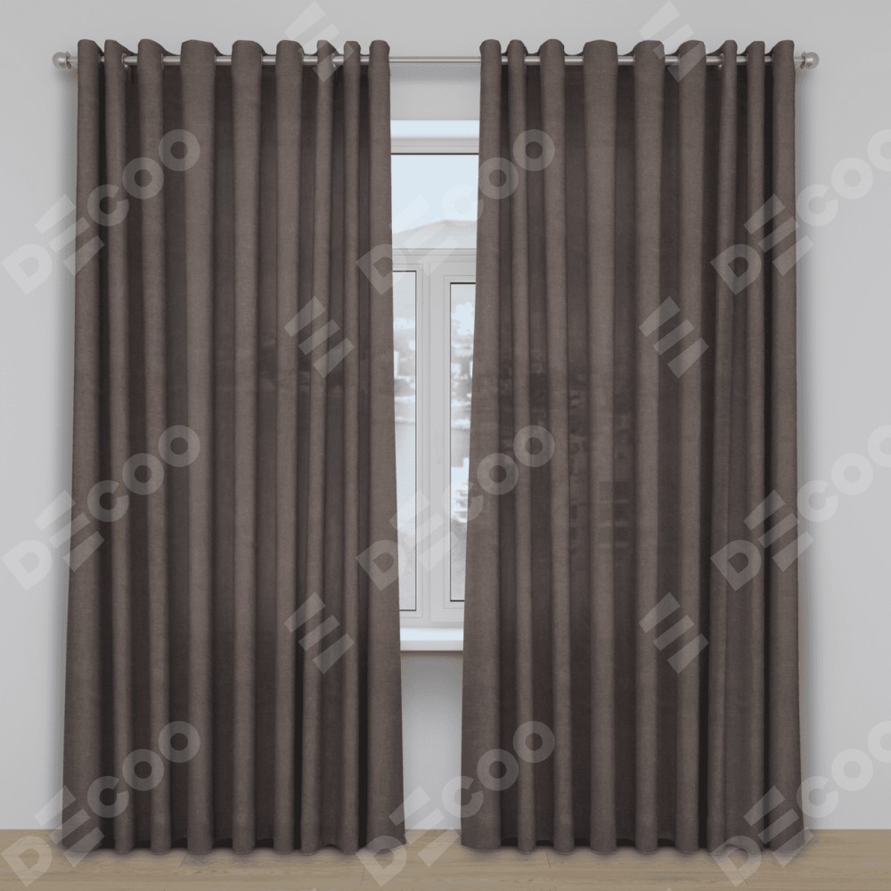 Комплект прямых штор, от производителя «Cortin», пошиты из ткани вельвет коричневый, артикул ткани 14135. Данная модель пошита на люверсах, комплектуется на выбор круглым карнизом и подходит для монтажа на стену. Прямые шторы на люверсах шьются по стандарту с коэффициентом 1/2 (на 100 см. ширины проёма 200 см. ширины ткани), отличительным преимуществом данной модели является простой способ монтажа. Достаточно повесить ее на трубу и штора готова!
