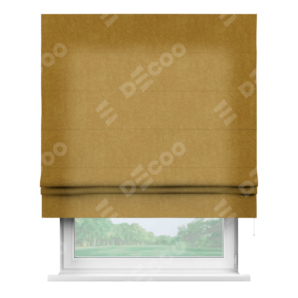 Римская штора производителя «Cortin», используется для проёма, пошита из ткани канвас горчица, артикул ткани v-476. Имеет универсальный механизм и подходит для монтажа: на потолок, на стену и в нишу.