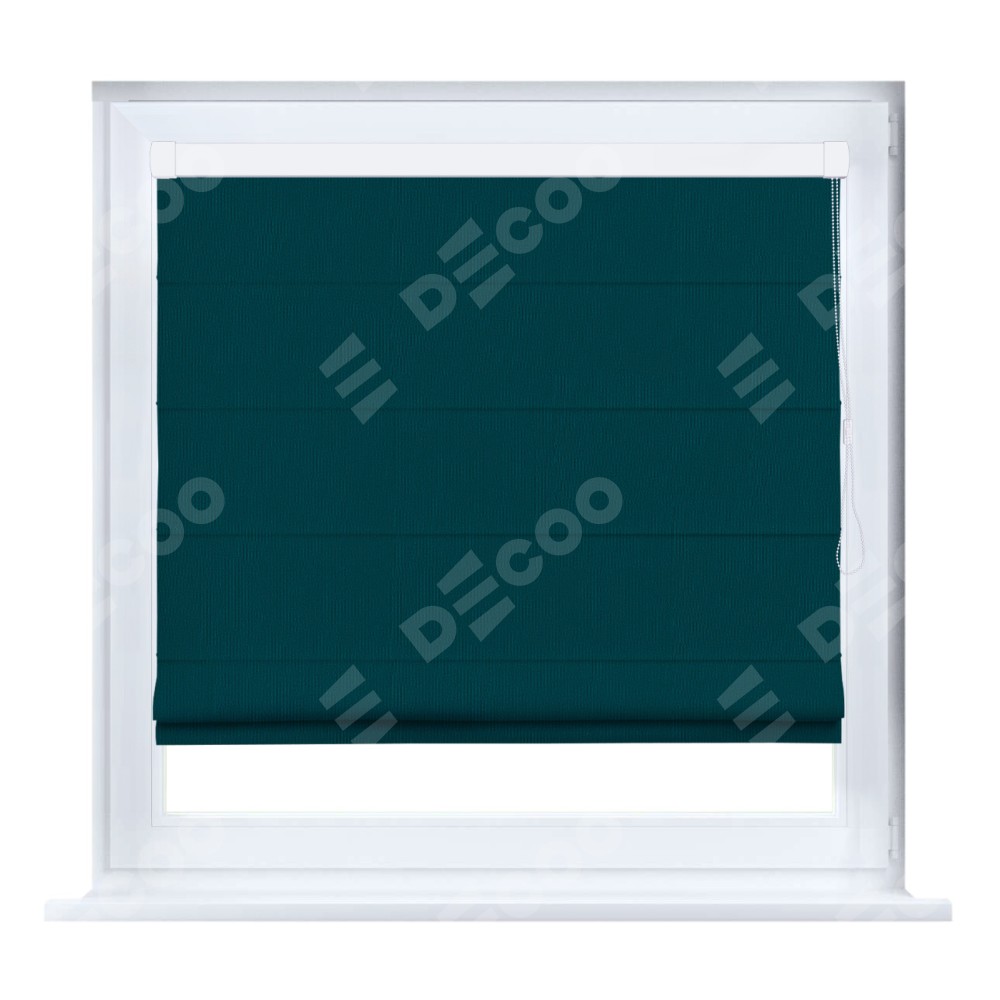 Римская штора производителя «Cortin», устанавливается на створку окна, пошита из ткани канвас изумрудный, артикул v-12487. Штора шьётся по индивидуальным размерам, для данного типа римской шторы возможная ширина от 35 до 150 см., высота до 250 см.