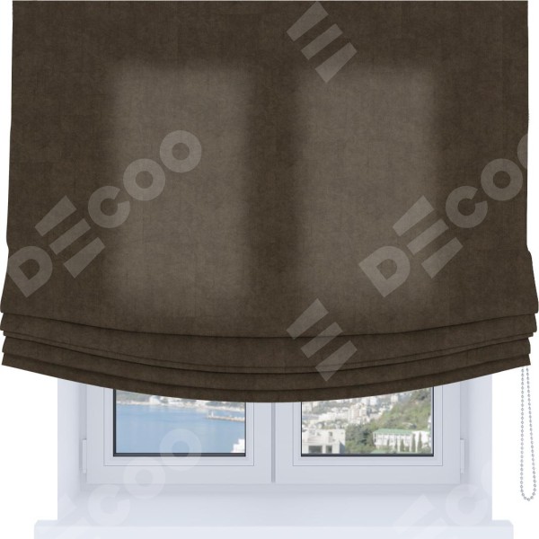 Римская штора «Кортин», канвас коричневый, Soft с мягкими складками