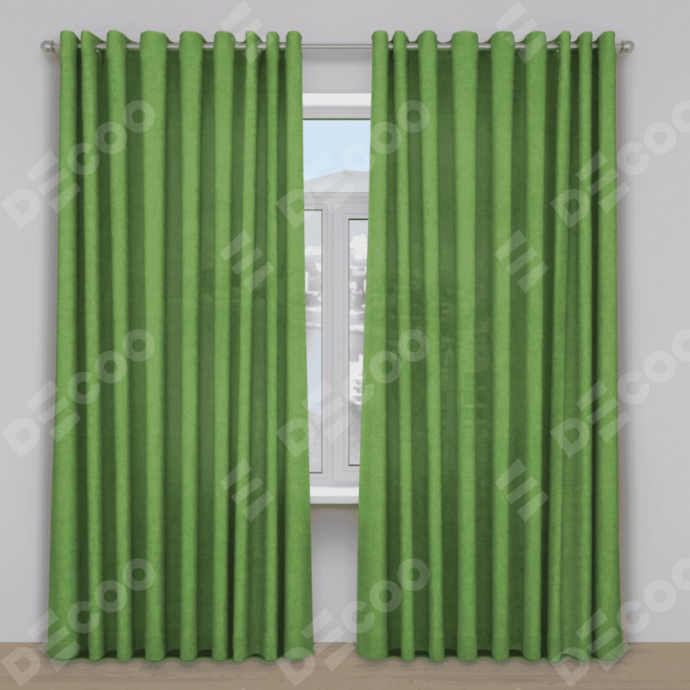 Комплект прямых штор, от производителя «Cortin», пошиты из ткани вельвет салатовый, артикул ткани 87072. Данная модель пошита на люверсах, комплектуется на выбор круглым карнизом и подходит для монтажа на стену. Прямые шторы на люверсах шьются по стандарту с коэффициентом 1/2 (на 100 см. ширины проёма 200 см. ширины ткани), отличительным преимуществом данной модели является простой способ монтажа. Достаточно повесить ее на трубу и штора готова!