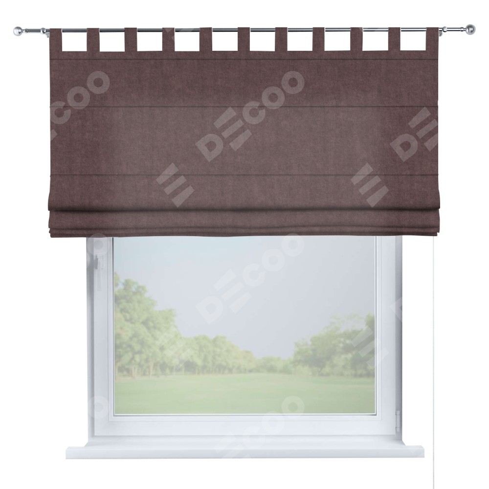 Римская штора производителя «Cortin», используется для проёма, пошита из ткани канвас махагон, артикул ткани v-37. Данная модель пошита на петлях, комплектуется на выбор круглым карнизом и подходит для монтажа на стену. Римская штора на петлях имеет простую систему регулировки высоты, отличительным преимуществом данной модели является простой способ монтажа. Достаточно повесить ее на трубу и штора готова!