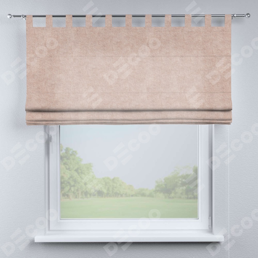 Римская штора производителя «Cortin», используется для проёма, пошита из ткани канвас пудровый, артикул ткани v-35. Данная модель пошита на петлях, комплектуется на выбор круглым карнизом и подходит для монтажа на стену. Римская штора на петлях имеет простую систему регулировки высоты, отличительным преимуществом данной модели является простой способ монтажа. Достаточно повесить ее на трубу и штора готова!