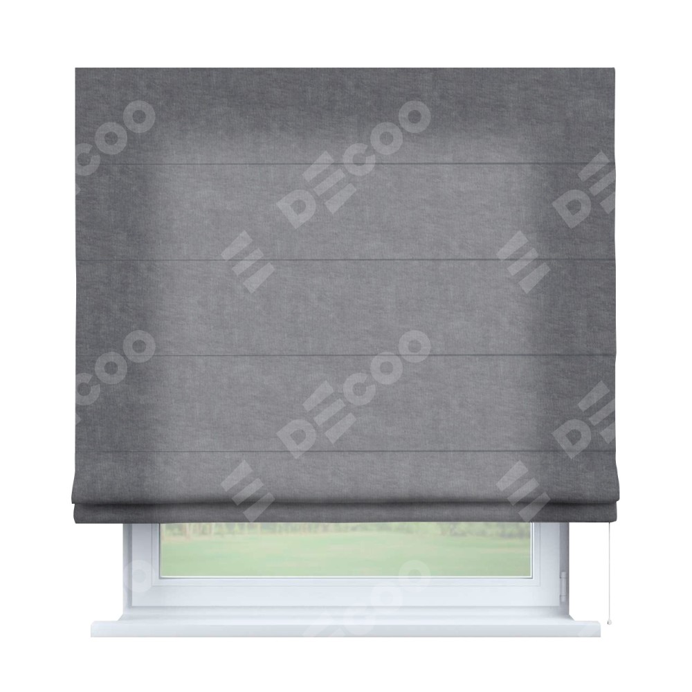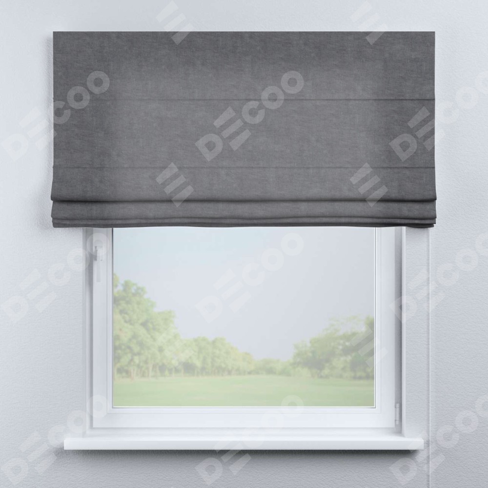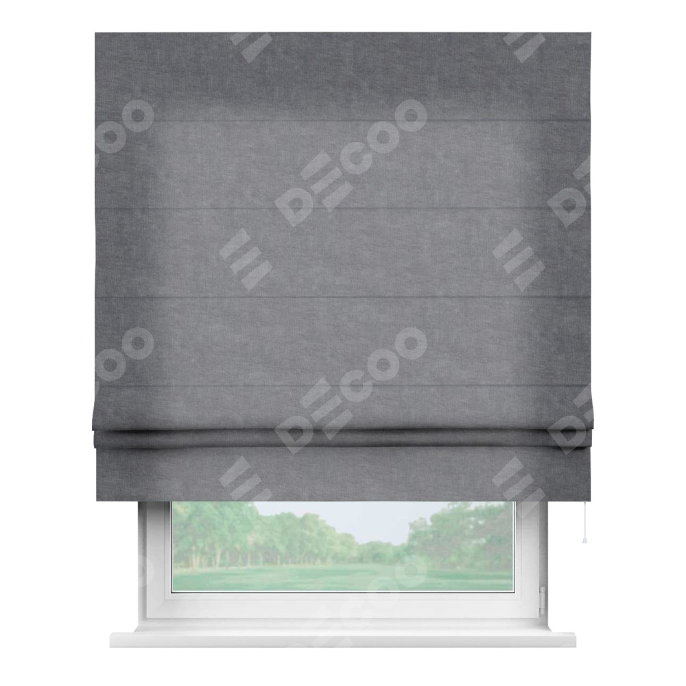 Римская штора производителя «Cortin», используется для проёма, пошита из ткани канвас стальной, артикул ткани v-1082. Имеет универсальный механизм и подходит для монтажа: на потолок, на стену и в нишу.