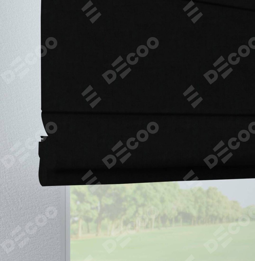 Римская штора производителя «Cortin», используется для проёма, пошита из ткани канвас черный, артикул ткани v-194. Данная модель пошита на петлях, комплектуется на выбор круглым карнизом и подходит для монтажа на стену. Римская штора на петлях имеет простую систему регулировки высоты, отличительным преимуществом данной модели является простой способ монтажа. Достаточно повесить ее на трубу и штора готова!