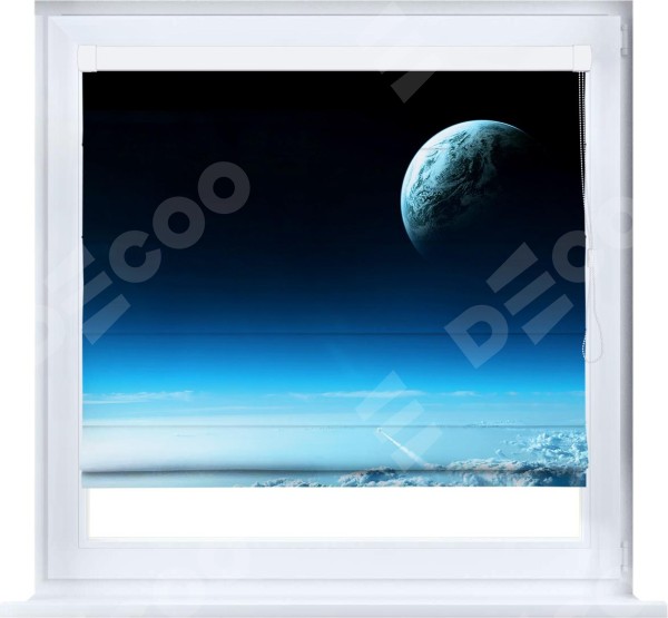 Римская штора производителя «Cortin», устанавливается на створку окна, пошита из ткани блэкаут с нанесением сублимационной печати «Горизонты вселенной». Штора шьётся по индивидуальным размерам, для данного типа римской шторы возможная ширина от 35 до 150 см., высота до 250 см.
