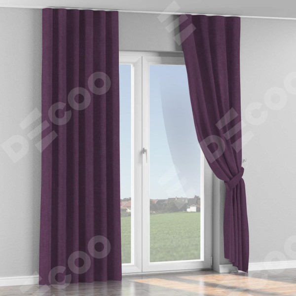 Комплект прямых штор, от производителя «Cortin», пошиты из ткани канвас баклажановый, артикул ткани v-111. С изнаночной стороны в верхней части штор пристрачивается шторная лента с декоративными складками «Волна». Для создания элегантных складок прямые шторы шьются по стандарту с коэффициентом 1:2 (на 100 см. ширины проёма 200 см. ширины ткани).