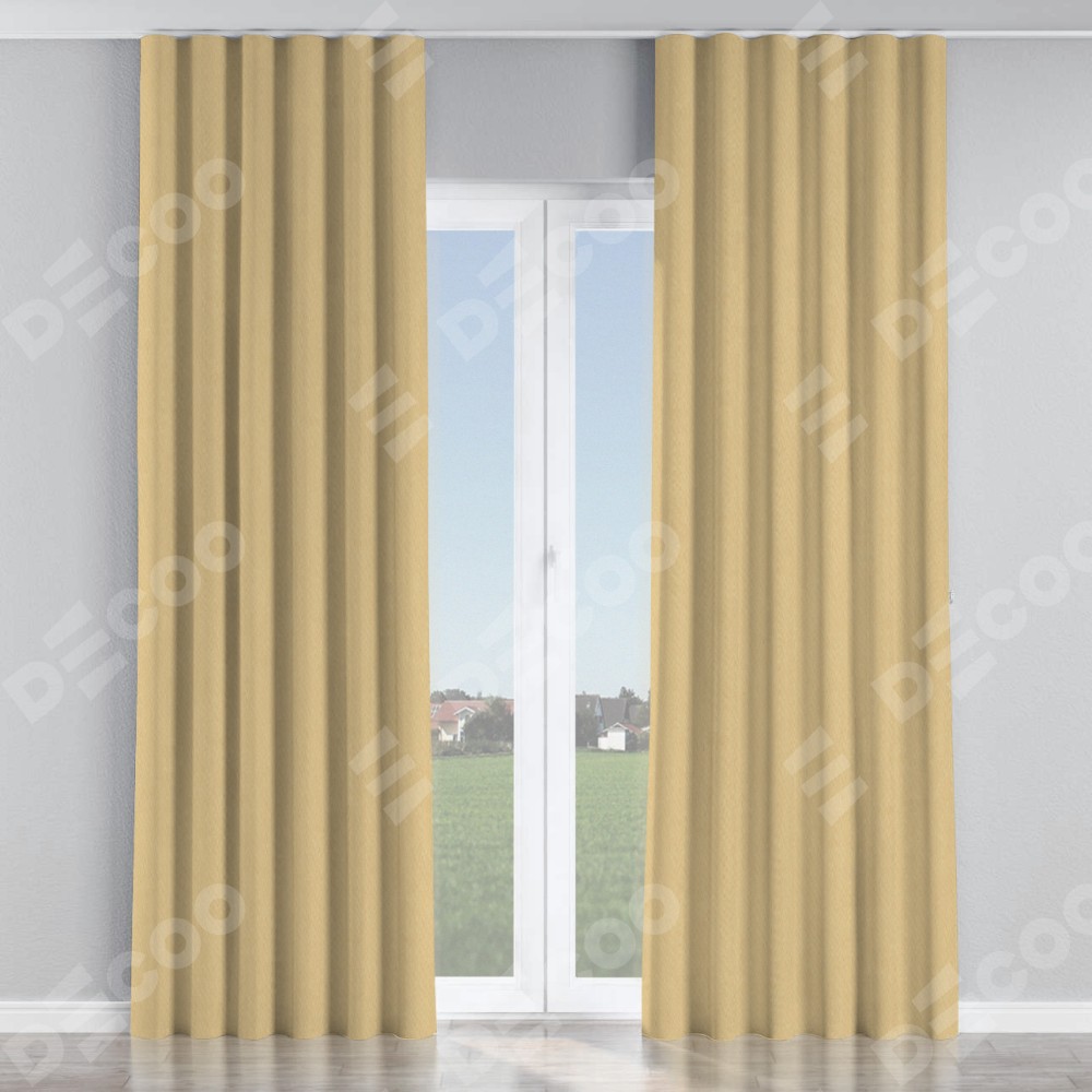 Комплект прямых штор, от производителя «Cortin», пошиты из ткани канвас бежевый, артикул ткани v-96. С изнаночной стороны в верхней части штор пристрачивается шторная лента с декоративными складками «Волна». Для создания элегантных складок прямые шторы шьются по стандарту с коэффициентом 1:2 (на 100 см. ширины проёма 200 см. ширины ткани).