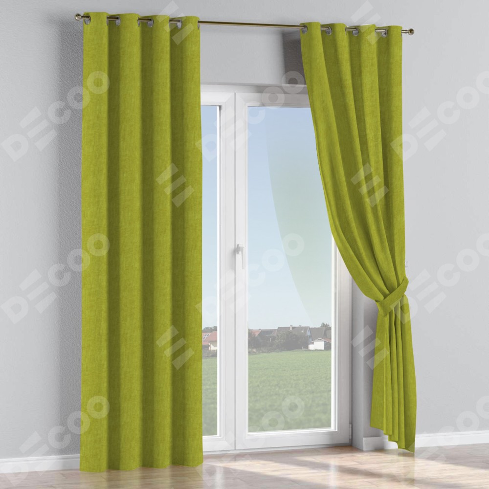 Комплект прямых штор, от производителя «Cortin», пошиты из ткани канвас зелёное яблоко, артикул ткани v-370. Данная модель пошита на люверсах, комплектуется на выбор круглым карнизом и подходит для монтажа на стену или потолок. Прямые шторы на люверсах шьются по стандарту с коэффициентом 1/2 (на 100 см. ширины проёма 200 см. ширины ткани), отличительным преимуществом данной модели является простой способ монтажа. Достаточно повесить ее на трубу и штора готова!