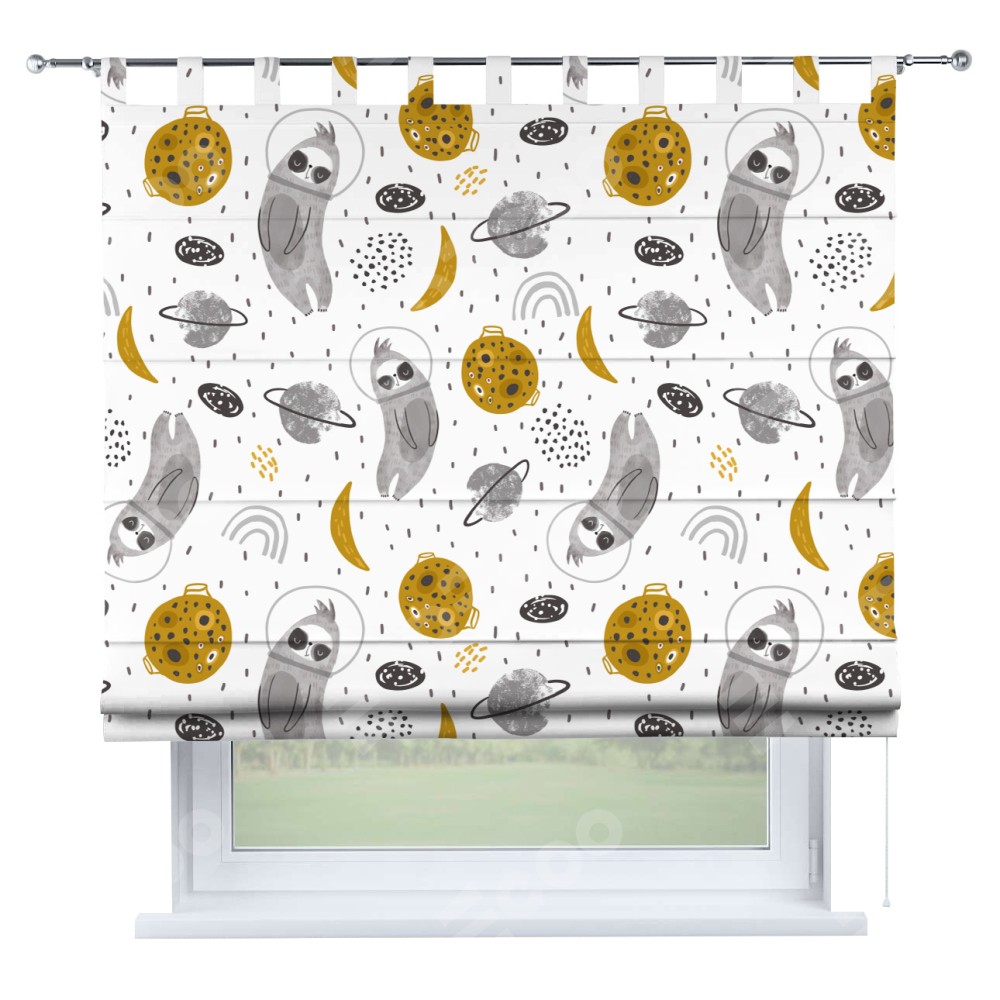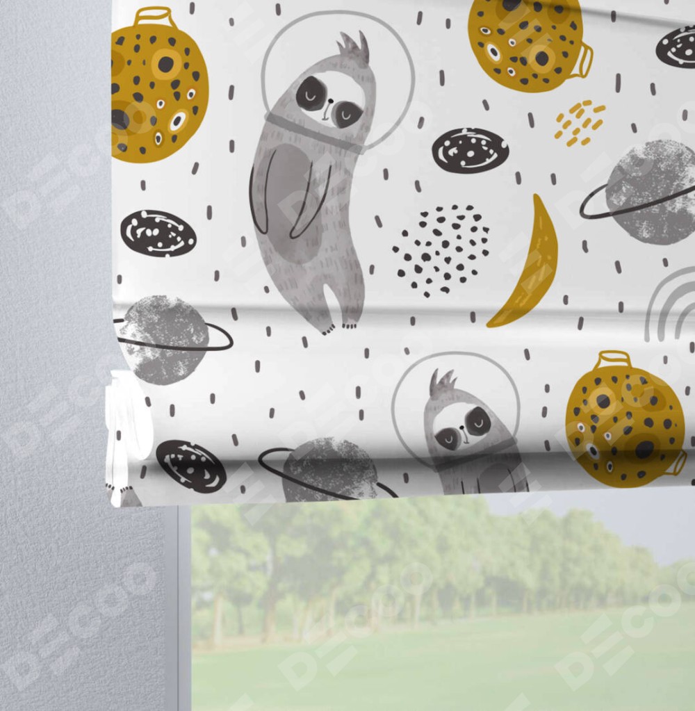 Римская штора производителя «Cortin», используется для проёма, пошита из ткани блэкаут с нанесением сублимационной печати «Ленивец в шлеме». Данная модель пошита на петлях, комплектуется на выбор круглым карнизом и подходит для монтажа на стену. Римская штора на петлях имеет простую систему регулировки высоты, отличительным преимуществом данной модели является простой способ монтажа. Достаточно повесить ее на трубу и штора готова!