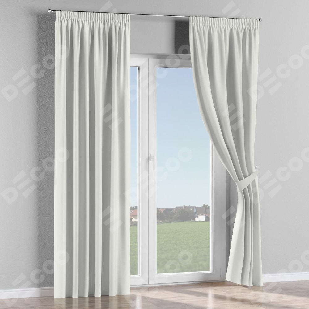 Комплект прямых штор, от производителя «Cortin», пошиты из ткани канвас молочный, артикул ткани v-93. С изнаночной стороны в верхней части штор пристрачивается шторная лента с декоративными складками «Карандаш». Для создания элегантных складок прямые шторы шьются по стандарту с коэффициентом 1:2 (на 100 см. ширины проёма 200 см. ширины ткани).