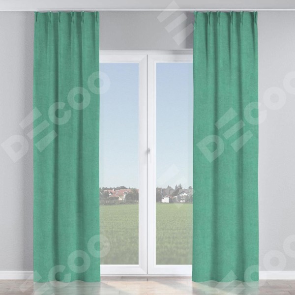 Комплект прямых штор, от производителя «Cortin», пошиты из ткани канвас канвас мятный, артикул ткани v-248. С изнаночной стороны в верхней части штор пристрачивается шторная лента с декоративными складками «Кустик». Для создания элегантных складок прямые шторы шьются по стандарту с коэффициентом 1:2 (на 100 см. ширины проёма 200 см. ширины ткани).