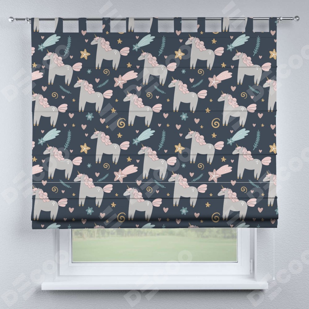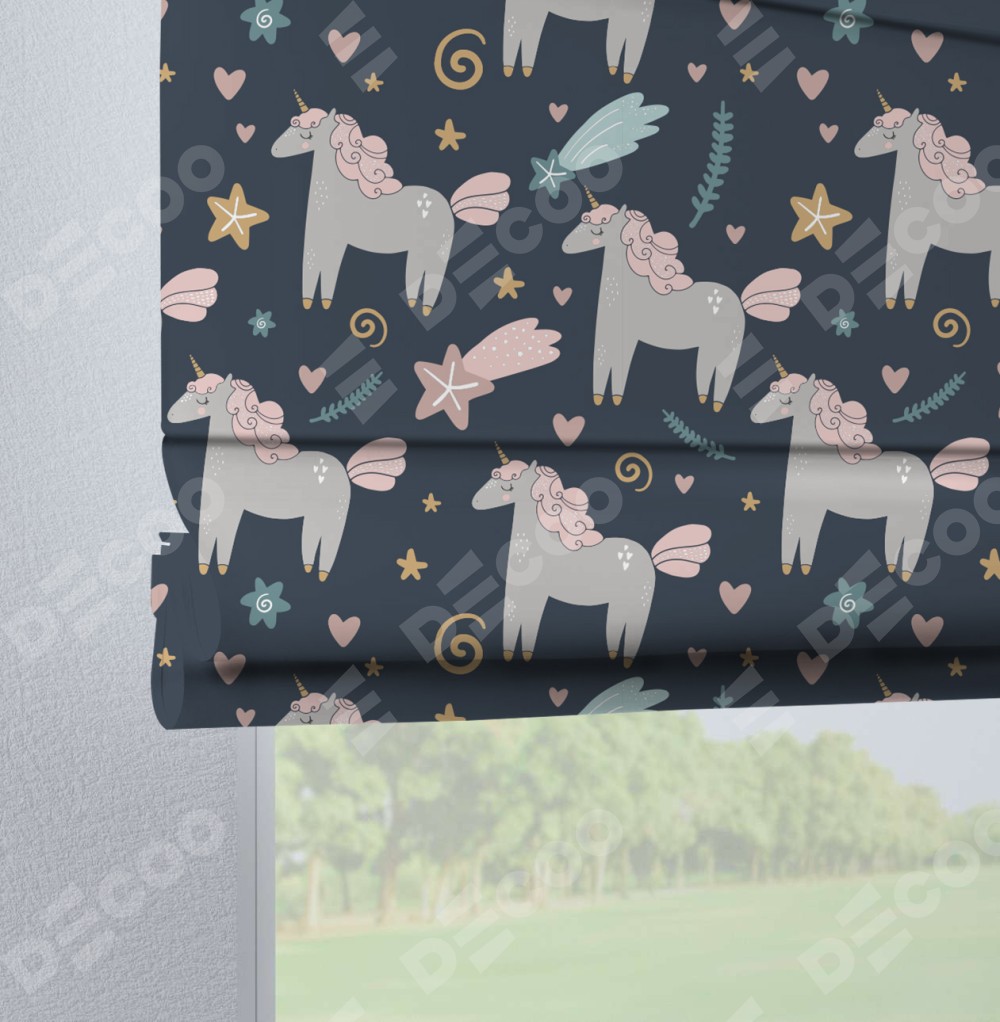 Римская штора «Кортин» на петлях «Милые единороги»