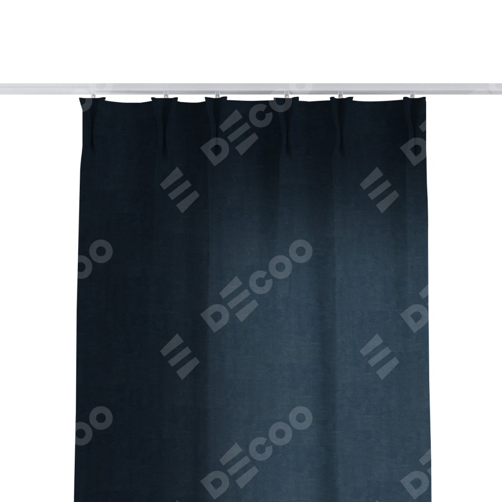Комплект прямых штор, от производителя «Cortin», пошиты из ткани канвас тёмно-синий, артикул ткани v-206. С изнаночной стороны в верхней части штор пристрачивается шторная лента с декоративными складками «Кустик». Для создания элегантных складок прямые шторы шьются по стандарту с коэффициентом 1:2 (на 100 см. ширины проёма 200 см. ширины ткани).