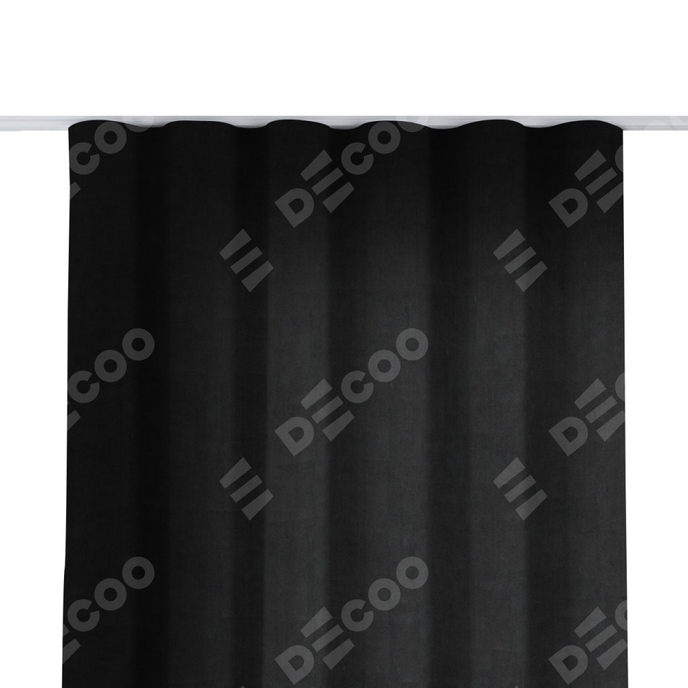 Комплект прямых штор, от производителя «Cortin», пошиты из ткани канвас черный, артикул ткани v-194. С изнаночной стороны в верхней части штор пристрачивается шторная лента с декоративными складками «Волна». Для создания элегантных складок прямые шторы шьются по стандарту с коэффициентом 1:2 (на 100 см. ширины проёма 200 см. ширины ткани).