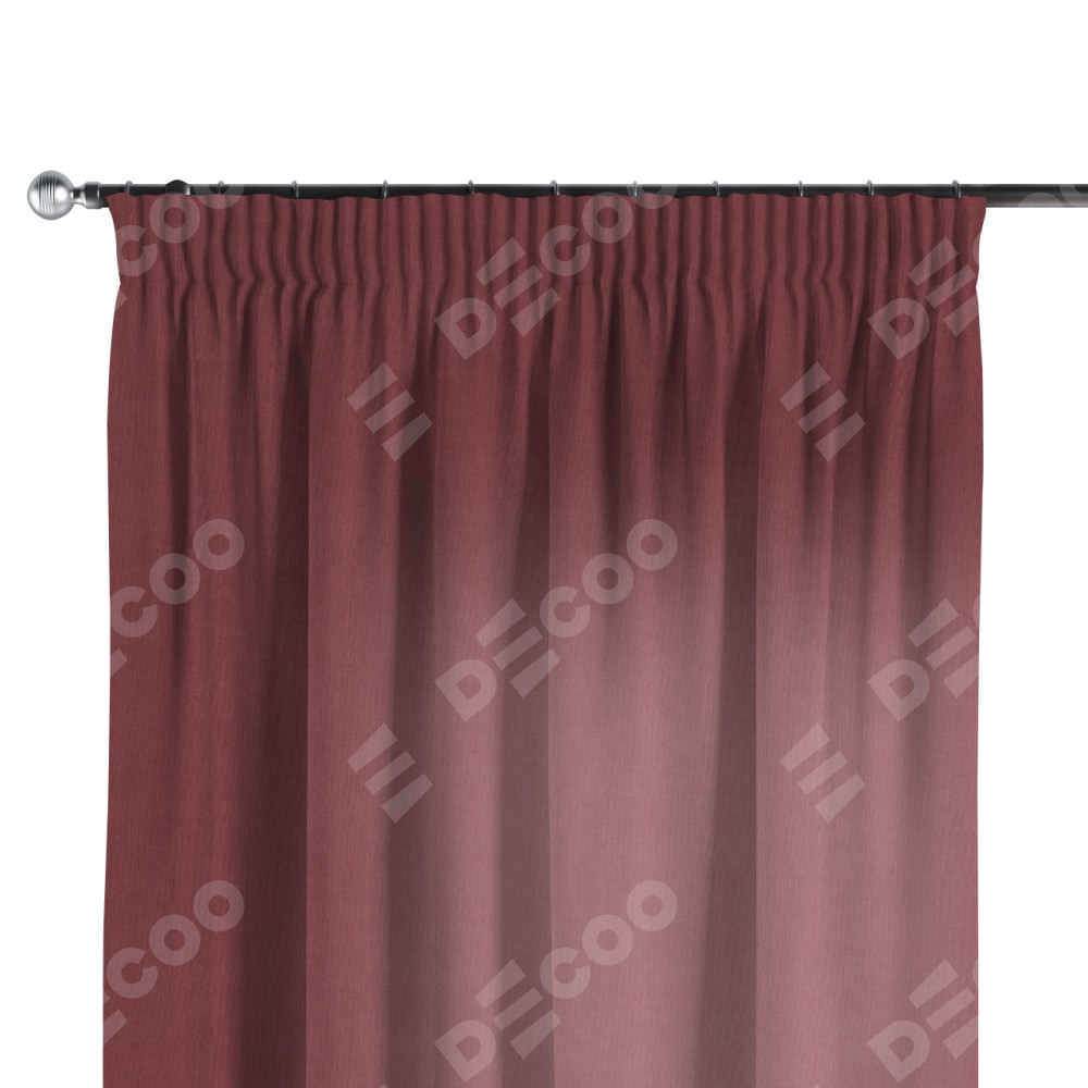 Комплект прямых штор, от производителя «Cortin», пошиты из ткани канвас ягодный, артикул ткани v-28. С изнаночной стороны в верхней части штор пристрачивается шторная лента с декоративными складками «Карандаш». Для создания элегантных складок прямые шторы шьются по стандарту с коэффициентом 1:2 (на 100 см. ширины проёма 200 см. ширины ткани).