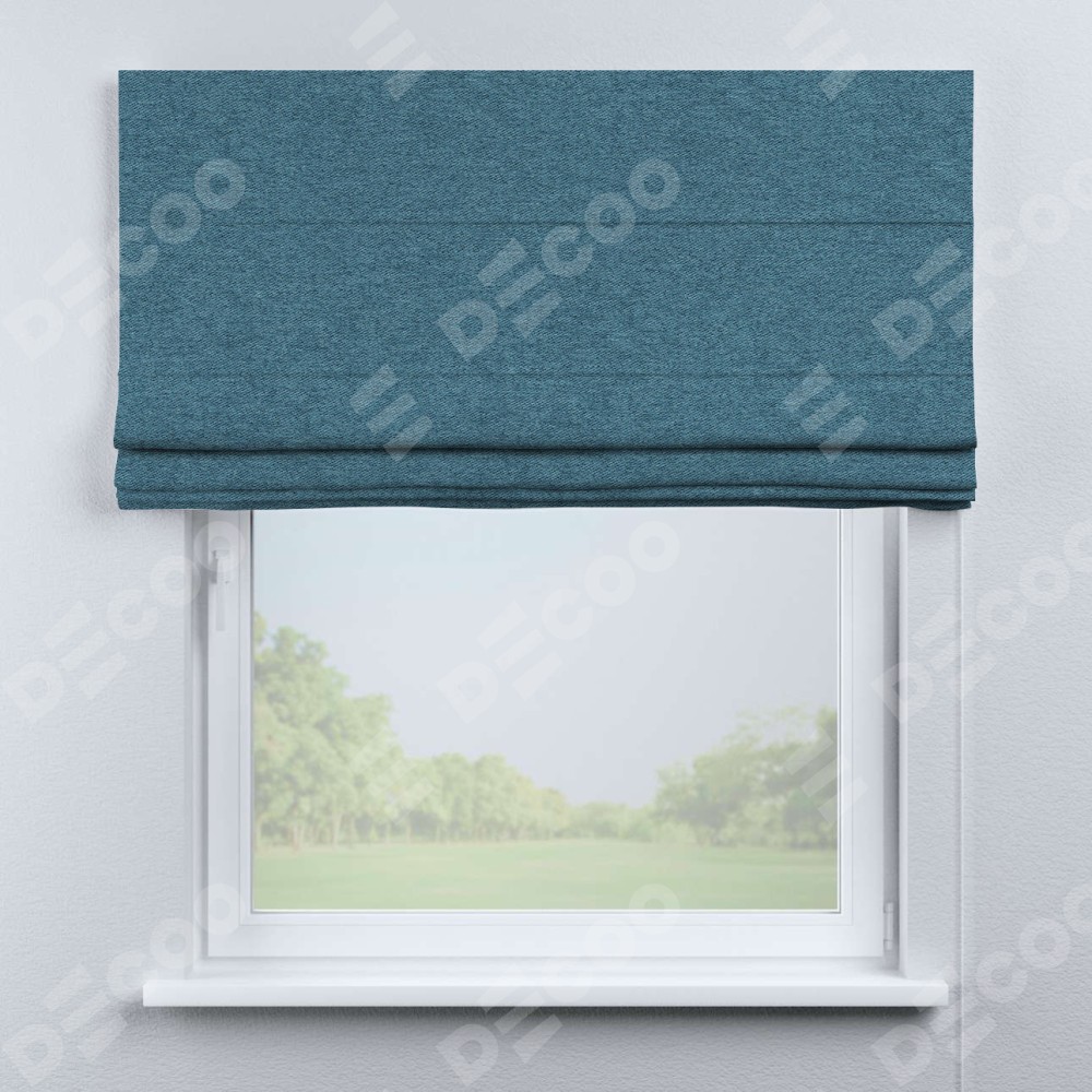 Римская штора «Кортин» для проема, ткань твид блэкаут, светло-синий