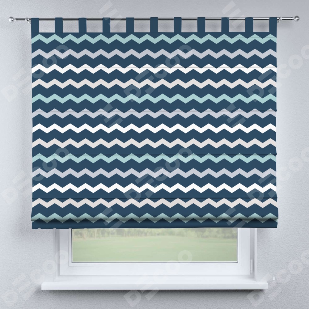 Римская штора производителя «Cortin», используется для проёма, пошита из ткани блэкаут с нанесением сублимационной печати «Морской шеврон». Данная модель пошита на петлях, комплектуется на выбор круглым карнизом и подходит для монтажа на стену. Римская штора на петлях имеет простую систему регулировки высоты, отличительным преимуществом данной модели является простой способ монтажа. Достаточно повесить ее на трубу и штора готова!