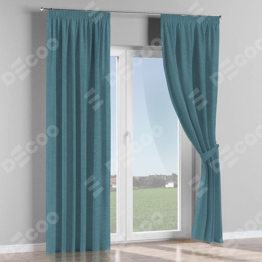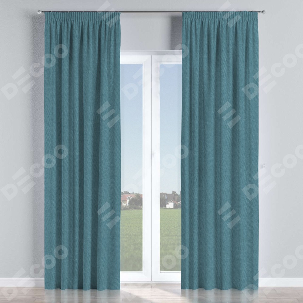 Комплект прямых штор, от производителя «Cortin», пошиты из ткани лён димаут светло-синий, артикул ткани 91007. С изнаночной стороны в верхней части штор пристрачивается шторная лента с декоративными складками «Карандаш». Для создания элегантных складок прямые шторы шьются по стандарту с коэффициентом 1:2 (на 100 см. ширины проёма 200 см. ширины ткани).