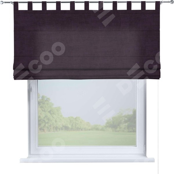 Римская штора производителя «Cortin», используется для проёма, пошита из ткани вельвет тёмно-фиолетовый, артикул ткани 72403. Данная модель пошита на петлях, комплектуется на выбор круглым карнизом и подходит для монтажа на стену. Римская штора на петлях имеет простую систему регулировки высоты, отличительным преимуществом данной модели является простой способ монтажа. Достаточно повесить ее на трубу и штора готова!