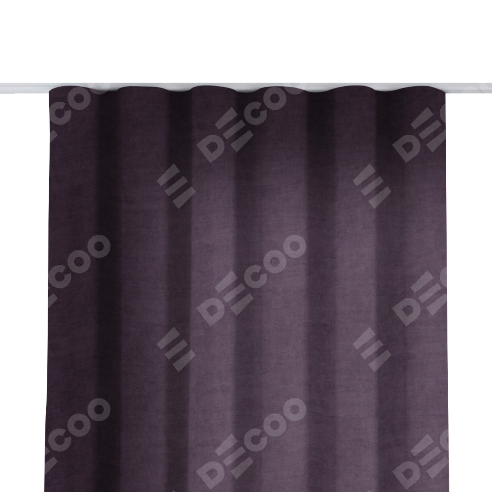 Комплект прямых штор, от производителя «Cortin», пошиты из ткани вельвет тёмно-фиолетовый, артикул ткани 72403. С изнаночной стороны в верхней части штор пристрачивается шторная лента с декоративными складками «Волна». Для создания элегантных складок прямые шторы шьются по стандарту с коэффициентом 1:2 (на 100 см. ширины проёма 200 см. ширины ткани).