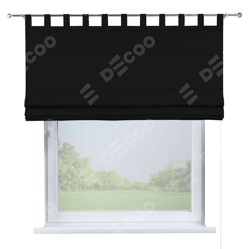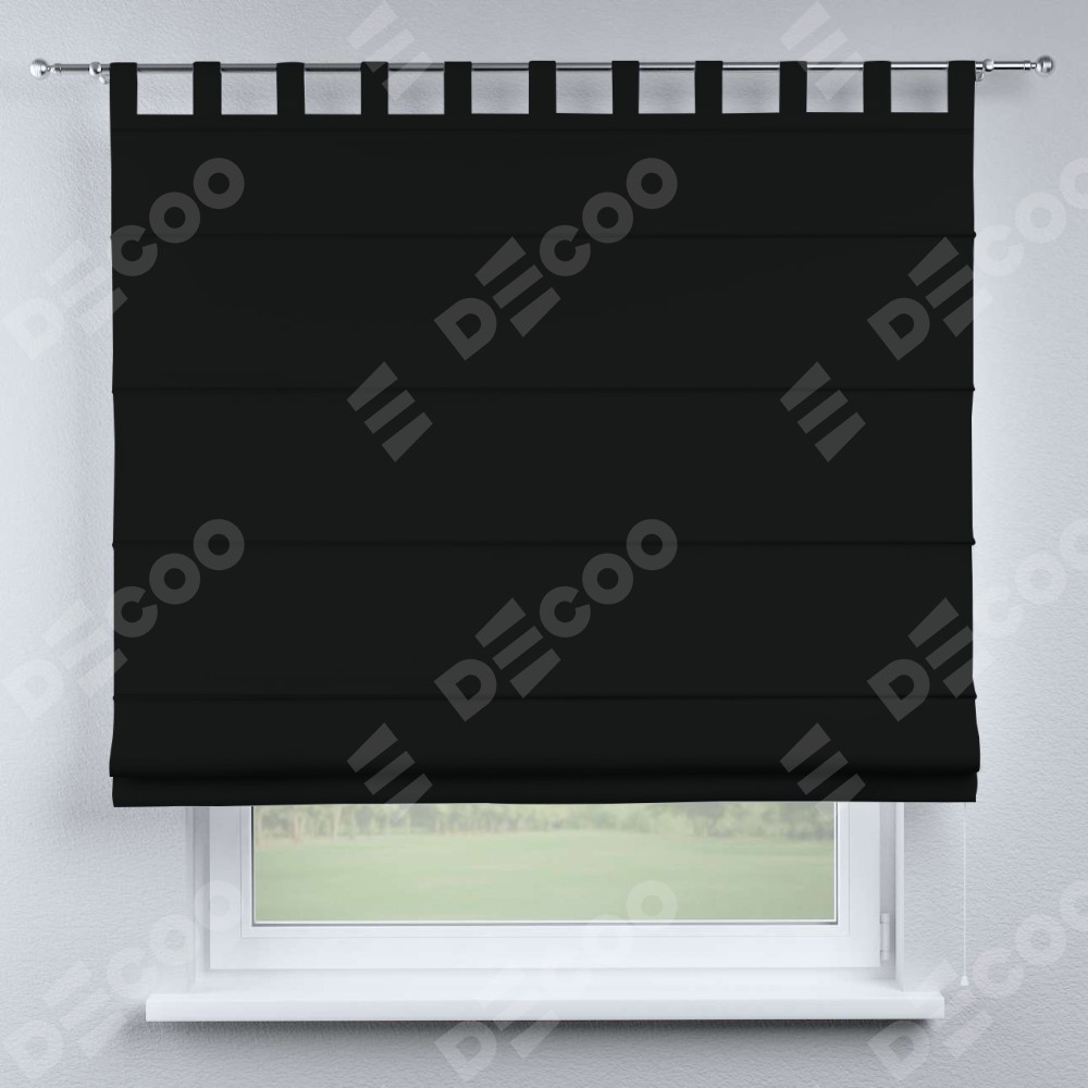 Римская штора производителя «Cortin», используется для проёма, пошита из ткани блэкаут однотонный черный, артикул ткани 91571−2. Данная модель пошита на петлях, комплектуется на выбор круглым карнизом и подходит для монтажа на стену. Римская штора на петлях имеет простую систему регулировки высоты, отличительным преимуществом данной модели является простой способ монтажа. Достаточно повесить ее на трубу и штора готова!