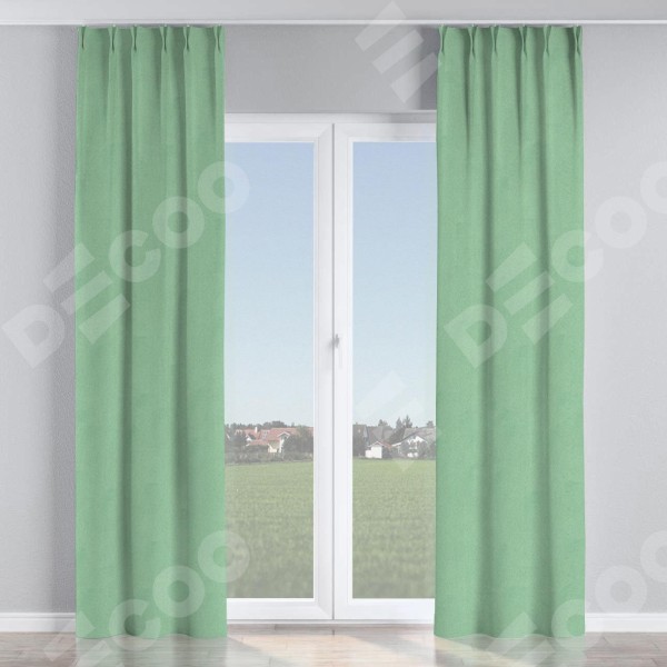 Комплект прямых штор, от производителя «Cortin», пошиты из ткани блэкаут однотонный ментоловый, артикул ткани 91572−1. С изнаночной стороны в верхней части штор пристрачивается шторная лента с декоративными складками «Кустик». Для создания элегантных складок прямые шторы шьются по стандарту с коэффициентом 1:2 (на 100 см. ширины проёма 200 см. ширины ткани).