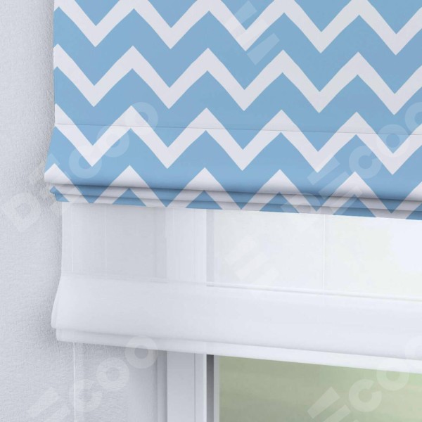Римская штора день-ночь производителя «Cortin», используется для проёма, пошита из двух полотен, с лицевой блэкаут с нанесением сублимационной печати «Зигзаг средний», вторая ткань тюль (по стандарту комплектуется тюль белого цвета артикул V-01). Имеет универсальный механизм и подходит для монтажа: на потолок, на стену и в нишу.
