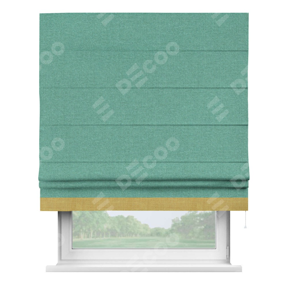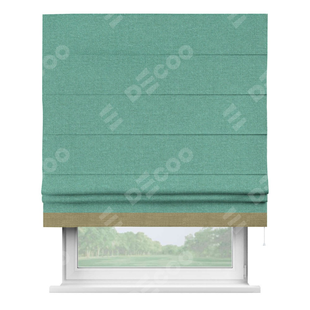 Римская штора «Кортин» с кантом Джестер, для проема, лён светло-бирюзовый