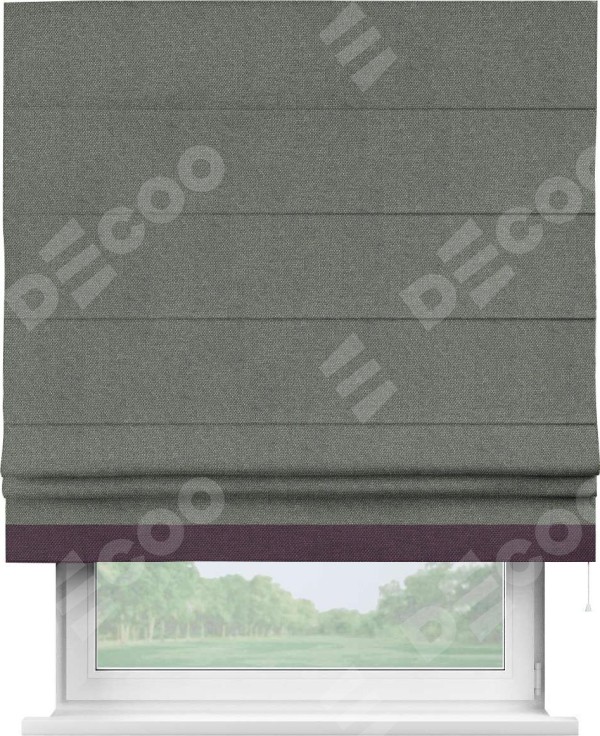 Римская штора «Кортин» с кантом Джестер, для проема, ткань лён димаут, тёмно-серый