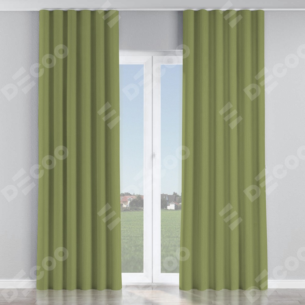 Комплект прямых штор, от производителя «Cortin», пошиты из ткани бархат золотая оливка, артикул ткани 90725. С изнаночной стороны в верхней части штор пристрачивается шторная лента с декоративными складками «Волна». Для создания элегантных складок прямые шторы шьются по стандарту с коэффициентом 1:2 (на 100 см. ширины проёма 200 см. ширины ткани).